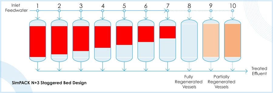SimPACK includes Envirogen’s innovative N+3 staggered bed design, which employs specialty resins tailored to target contaminants – and not only nitrate. Others include chlorate, chromium (Hex-6), perchlorate, selenium, arsenic, hardness, TCP, and PFAS.